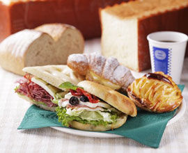 焼き上がるパンの香り溢れる、レンガと木を基調とした店内には、材料にこだわり、製法にこだわった、“手作り”のパン・ペストリー・サンドイッチが毎日早朝から並んでいます。さまざまな食のシーンにご利用頂けるよう、定番から毎月入れ替わる多数の季節限定の品まで豊富に取り揃えております。一日を通して、多様なニーズにお応えいたします。