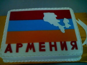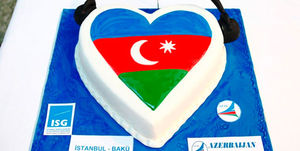 アゼルバイジャン航空で記念カットされたケーキ♪