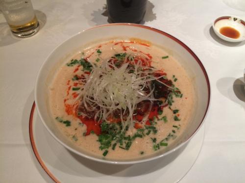 スープは辣油ベースのスープに白胡麻ペーストを溶かしてある感じで、着丼してからよくかき混ぜると胡麻の香りが立ち上がってきました。