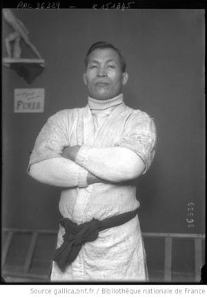 1904年ヨーロッパへ渡りフランス、イギリスとほっつき歩く。折からのプロレスブームに興味を抱き柔道半分、プロレス半分の試合をやり続ける。1910年インドのグレート・ガマと対戦。