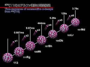 新元素の名称と元素記号を提案する権利は発見チームに与えられる。113番の名称は日本にちなんだ「ジャポニウム」が有力とみられ、関係機関の承認を得て決定する。