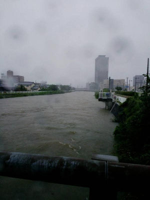 浜松はここ1週間で数年に一度レベルの雨が3回も降ったのに、今日はそれが前振りだったかのような大雨で大変危険な状況。ウチの目の前の馬込川@浜松駅南の水位はまだ多少余裕があります https://t.co/Esi5CN2cIO