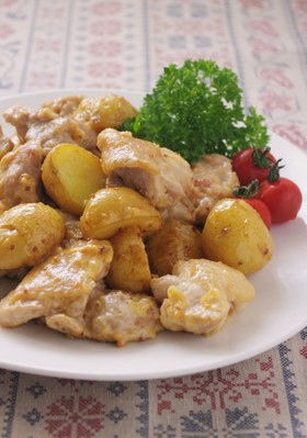 鶏肉と新ジャガのマスタードマヨネーズ炒め