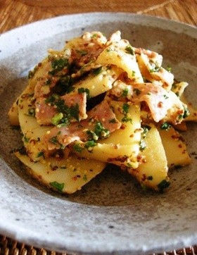 甘辛♡じゃが芋ベーコンの粒マスタード炒め