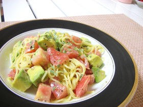 アボカドの冷製パスタ★粒マスタード風味
