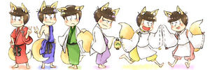 おそ松さん(六つ子)の「お狐松さん」ネタの二次創作イラスト・漫画(Twitter投稿)のまとめです。どれもすごく上手いです。