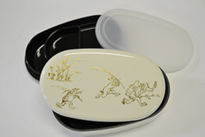 全6種で、2種ずつが対になっており、並べると鳥獣戯画の場面を再現できるようになっている。