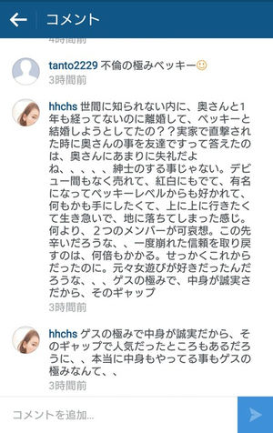 インスタにコメントした人を批判。