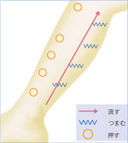 足首から段階的に圧迫することにより、足の静脈の血液が下から上に流れやすくなります。