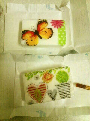 デコパージュとはペーパーナプキンのような薄い紙を専用の液(のり)で石鹸や木材、布などに接着する工芸のこと