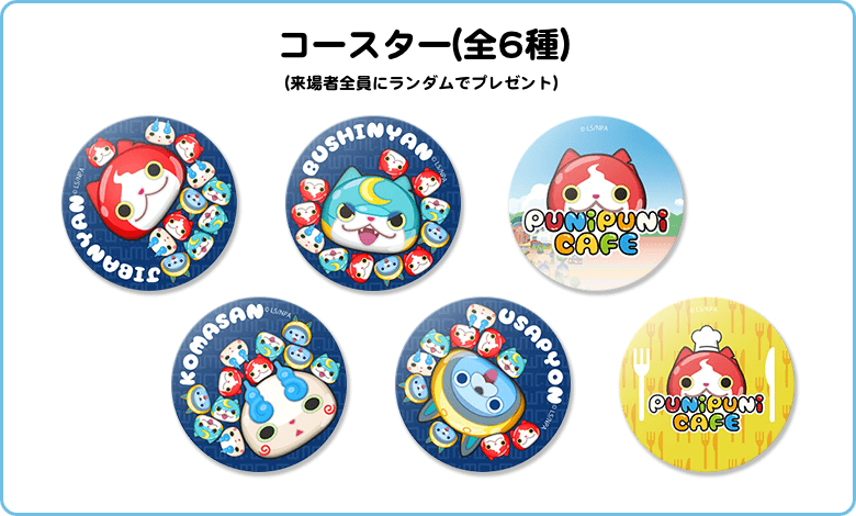 「妖怪ウォッチ ぷにぷに カフェ オリジナルコースター(全6種)」と