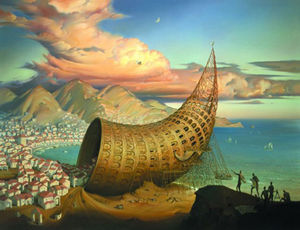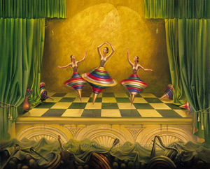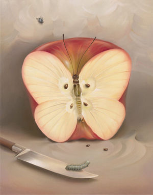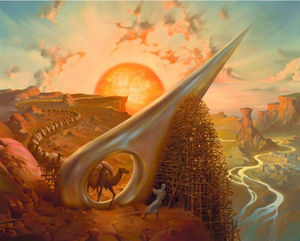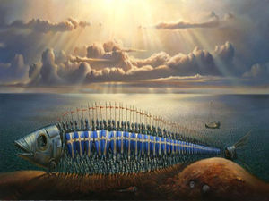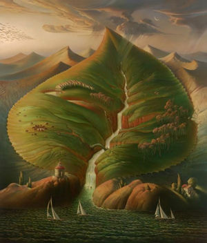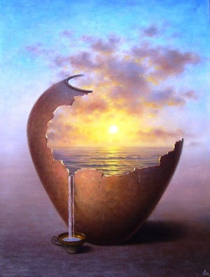 比喩的写実主義 アーティストが数多く言われている人類という存在意義を直観的に表現された世界。 この比喩的表現法とは、遠い昔の風景やとある出来事を潜在的に示したり、啓示的に連想したものであり、その世界観は数々の神話や詩、そして音楽から深く影響を受けている。