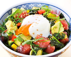 ゴマと青ネギの風味も香ばしく食欲をそそります。半熟卵とかき混ぜればさらに美味しくいただけます。