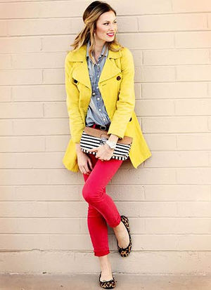 カラートレンチに挑戦して人目を惹くお洒落女子に。