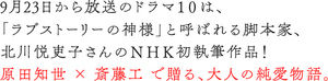 NHKが自信をもっておすすめする、今秋のドラマ。