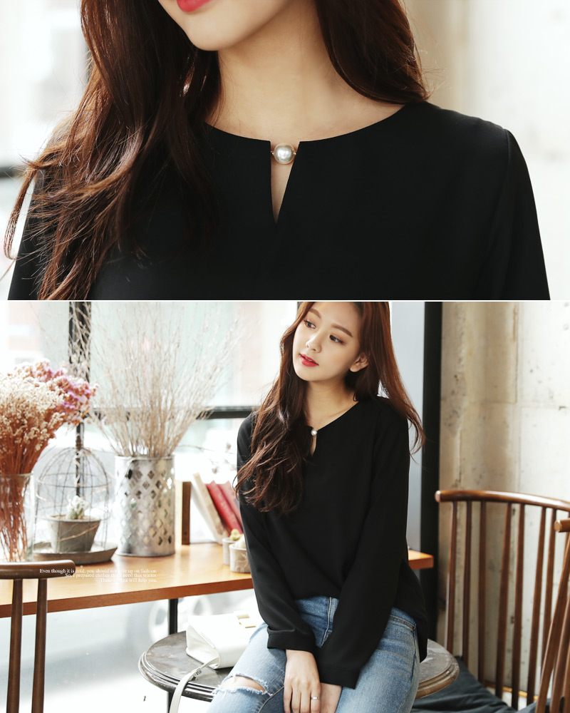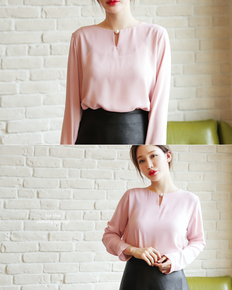 ネックスリットパールポイントブラウス・全3色シャツ・ブラウスブラウス・チュニック|レディースファッション通販 DHOLICディーホリック [ファストファッション 水着 ワンピース]