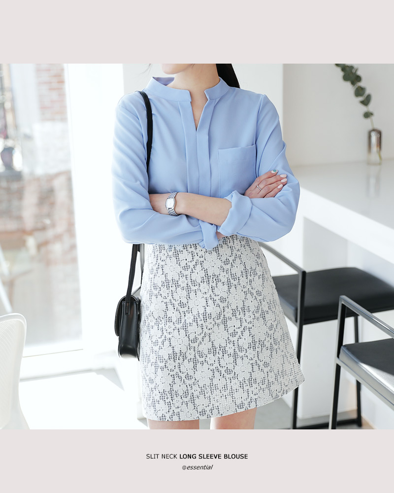 バンドカラーネックスリットブラウス・全4色シャツ・ブラウスブラウス・チュニック|レディースファッション通販 DHOLICディーホリック [ファストファッション 水着 ワンピース]