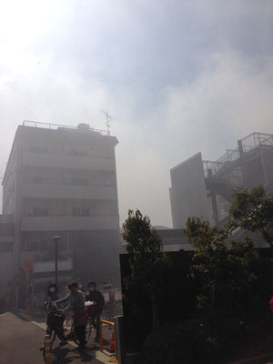 空は青いのにずいぶん黒い雲がかかってるなぁと思ったら火事だよ。 pic.twitter.com/kuL2eOnsz6