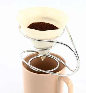 ワイヤーで構成され面を持たない本商品は、お湯の注ぎ方で様々に味が変化します。澄んだ風味や深いコク、自分好みな味を探しながら、自由で気ままなコーヒータイムをお楽しみください。フィルターには円錐形フィルター(1〜2杯用)を、マグカップは口の広さが6cm以上のものをご使用ください。