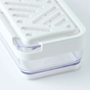 外周に溝を設けることにより、スリムタイプながらもおろし面から汁がこぼれにくく、容器に流れ込むよう、工夫されています。