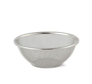 網目じゃなく板に穴を開けてるので、すごく洗いやすいし、丈夫。あと適度な重量感がよい。