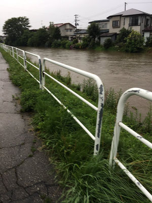 実家の横にある川(ガードレールから手前のとこが川)が氾濫しとるとのこと。 pic.twitter.com/V6RflAfYZO