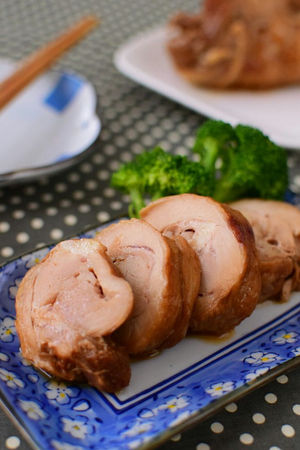 鳥モモと生姜醤油をビニ袋に入れて炊飯器にブチ込み、保温ボタンを押して1時間待った物体ですが、とても美味しいので皆さんも是非やってみてください。