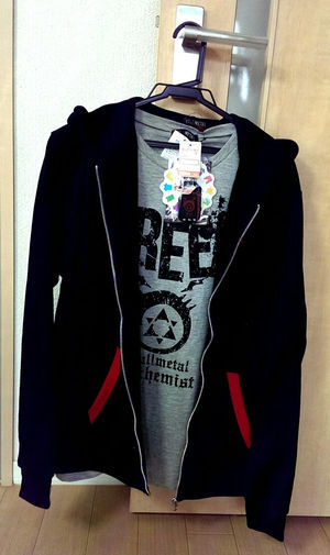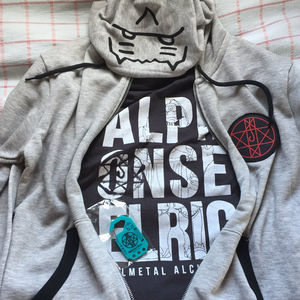 3000円でパーカーとTシャツとカラビナ付いてるってお財布に優しい……アルフォンスファンとしては買いだよこれ。一番着やすい色してるしね pic.twitter.com/0Sis2sWkQ7