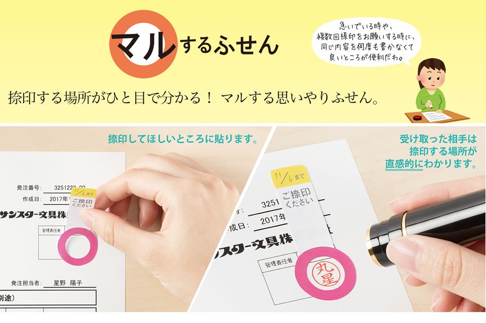 捺印する場所がひと目で分かる!マルする思いやりふせん