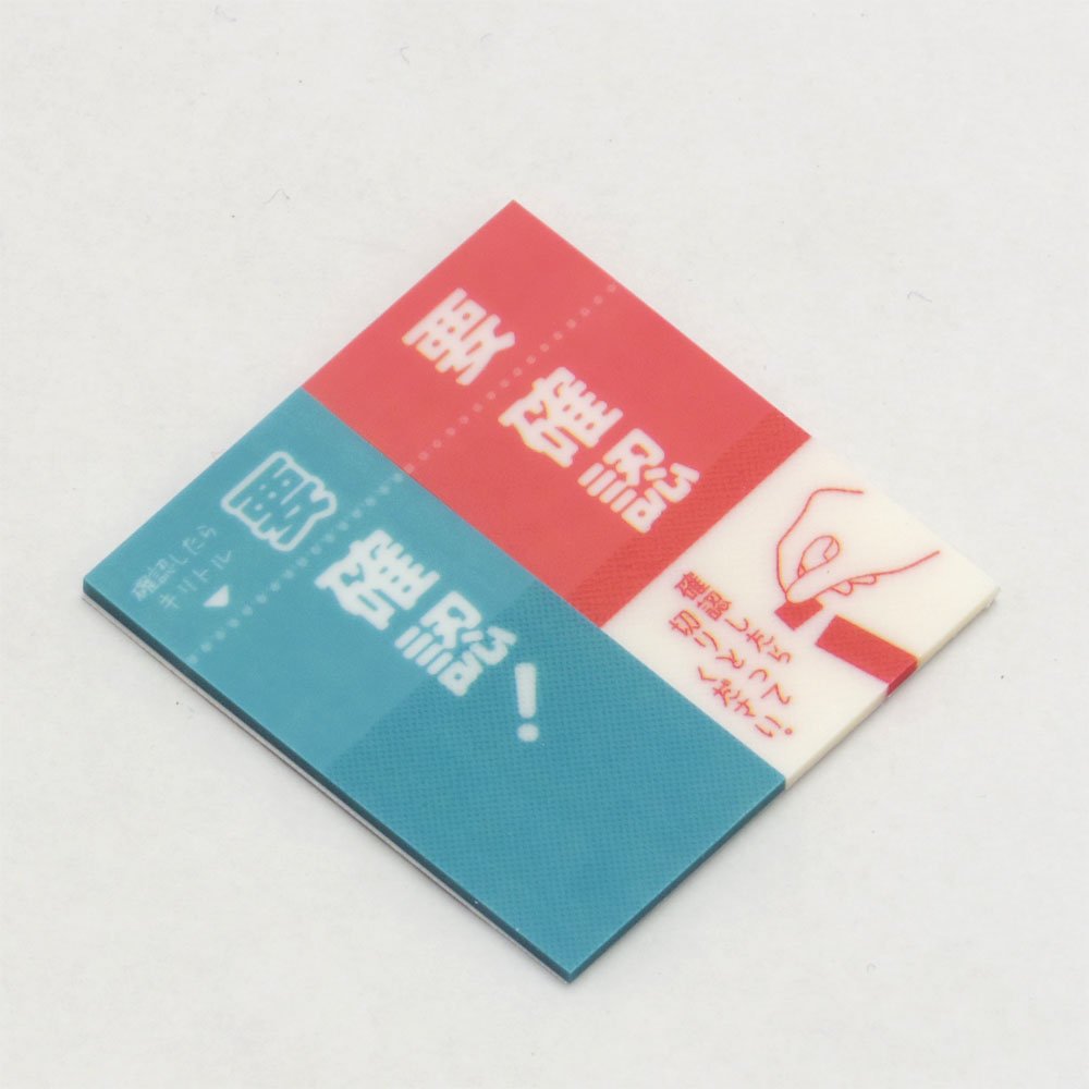 「ピリット!」は、ふせん上部についているミシン目でちぎると、「?」が「!」に、「LOOK!」が「OK!」に、「要確認!」が「確認!」など、言葉や絵柄が変化するふせん