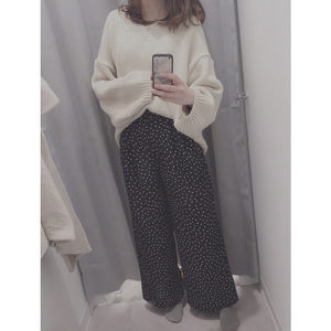 GUの完売寸前ドットワイドパンツをゲット可愛いなぁ〜と思ってて店舗行ったらSサイズラスト1点ですぐさま買いましたギリギリセーフ良かった良かったまだまだ春物買えるテンションになれないけどタイツ履いたら全然今から使えるしね〜