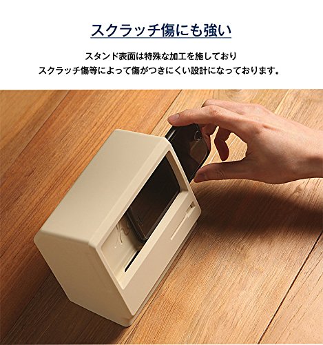 使い方は簡単。横から差し込んで電源ケーブルをつけるだけ。シリコンケースだから、スライドさせた時にiPhoneが傷つくこともありません。もちろん、デスクに置いても邪魔にならないようコンパクトに設計されています。