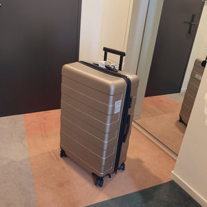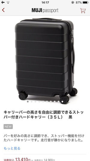 無印良品週間なのを口実に国内旅行用に小型のキャリーバッグを購入.ちゃんとストッパーがついてるのはえらいね.サイズ的には乗客100人以下の飛行機でも機内持ち込み可.