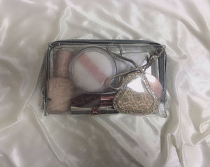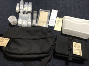 中身が見えるクリアケース。日本発国際線の、航空機客室への液体物持込制限ルール対応のケースです。