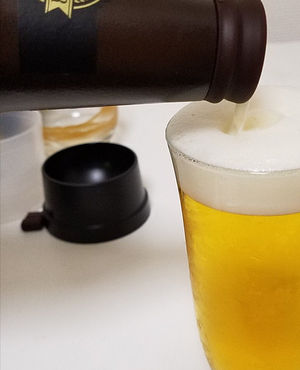 この瓶ビールの先端の部分に似たアイテムは「泡ひげビアー」。