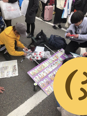 @yoon_chim_fy この方達昨日も居て、グッズ交換探してる時に声かけられたんですが基本同じメンバー交換で今テヒョンの○番が数少ないんで〜みたいな事を言われてああフリマアプリでコンプ販売目当てなんだろうなと思いました…