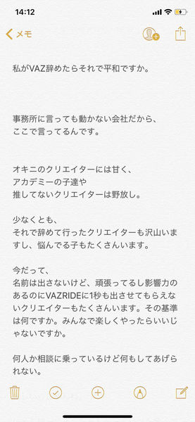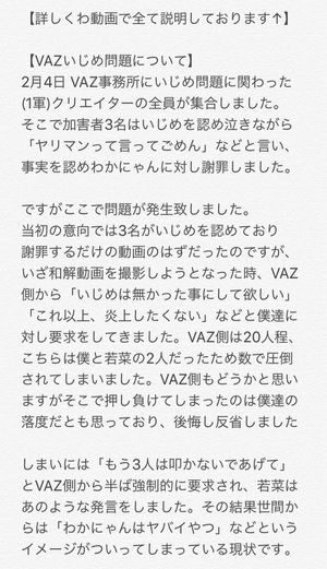 この騒動を発端に、わかにゃんがVAZのいじめ問題、給料未払い問題について言及。