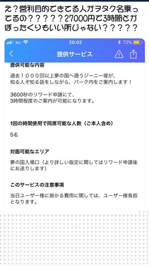 まぁ、話をしながらパークを案内するという内容ですから?歩いて話して3時間で27000円って高いじゃん!って話ですよね。