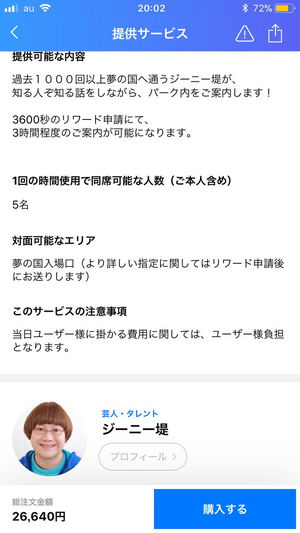 ジーニー堤がタイムバンクで「購入すれば夢の国のパーク内を案内する」というリワード(商品)を販売