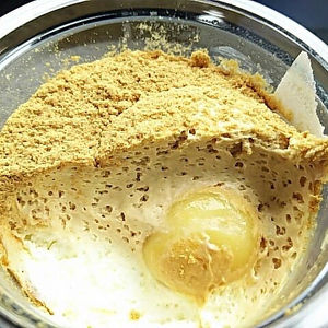 仕上げにきなこをたっぷりと振りかけたスイーツです。もちろん商品名のとおり、白玉も入っています。