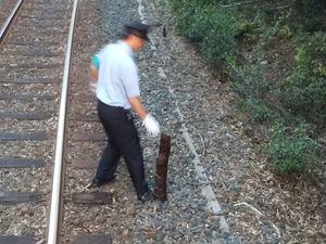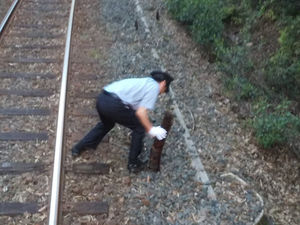 予土線の線路脇にあったタケノコ下り列車が接触して少し遅れたので乗車していた上り列車の乗務員さんが現場で一時停車し撤去していました。 pic.twitter.com/yAvTTM8i5z