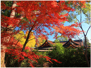 子安塔からは、美しい紅葉の中に舞台が浮かびあがって見えます。