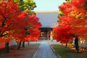豊臣秀吉の正室である北政所(ねね)が、秀吉の菩提を弔うために建立されたことで有名な寺。11月中旬から12月上旬にかけて紅葉の見頃を迎える。