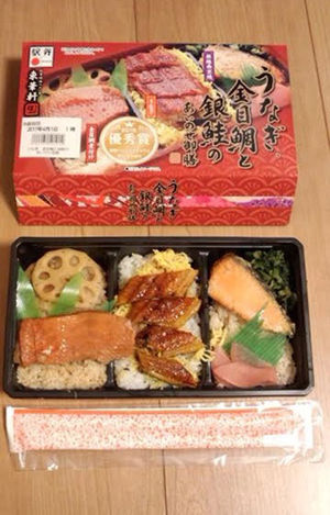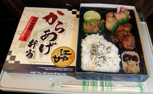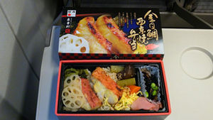 1888年7月に足柄下郡国府津村で旅館業を営んでいた飯沼ヒデが、国府津停車場構内で販売した「竹の皮に包んだ握り飯に沢庵を添えたもの」が東海道本線最初の駅弁とされる。