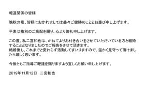 ●令和元年11月、二宮和也が元女子アナと結婚!
