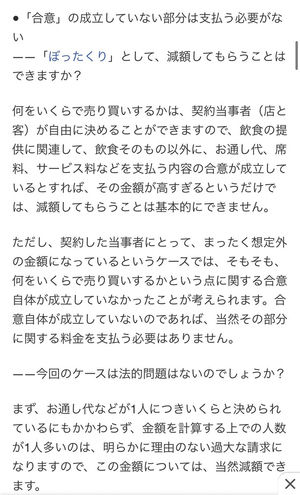納得がいかない旨を伝えても前述の事しか言わない。時間の問題や嫌な雰囲気で締めるのもアレなので仕方なく支払いました。帰り際、別のグループも揉めており警察が来てました。