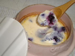 ・バニラエッセンス、牛乳を入れながら、かき混ぜ一度濾し釜飯の器に入れる。