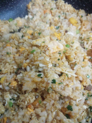 炒めて水分を飛ばして完成です。おこげを作ると香ばしくて美味しいですよ。