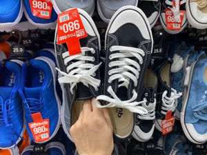 ▼サンキューマート、チェッカー柄のスリッポンも個性的!390円