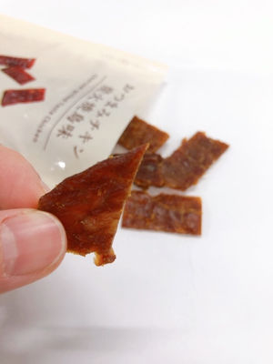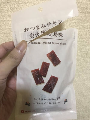 一見するとビーフジャーキのような見た目だが、商品名のとおりチキンである。